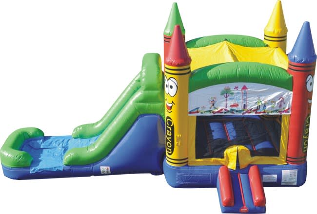 Two combo bounce houses that have bounce area and a slide!