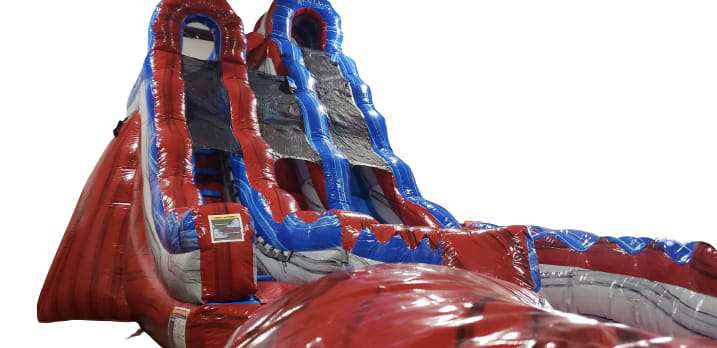 New for 2023! Hey Soddy Daisy TN and surrounding areas when looking for a different sort of waterslide than just the normal straight down drop effect then check out this new slide with a bit of a twist! Chattanooga TN waterslide rentals brought to you by Running Wild Inflatables our Fire and Ice waterslide. This waterslide is a step above just a plain straight lane waterslide it has two levels, two waterslide lanes with a curve and a splash pool! Start off by climbing to the top of the first set of stairs then once you get there you make the decision of going down the first slide (red fire) or climbing on up to the second smaller set of stairs to the higher slide (blue ice). No matter which level you choose the excitement when zipping down the slide, the speed of banking around the curve and splashing down in the splash pool make this a very unique slide! Ooltewah TN, Signal Mountain TN, Hixson TN when looking for the cleanest and best waterslide we are your number one sources around the area. Easily book online, check availability or contact us with any questions