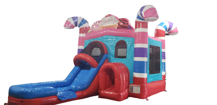 New for 2023! Our Candyland combo is on the wish list of a lot of kids! This candy land combo offers bounce house area, climb, slide and inside basketball hoop! This Candland combo with its vibrant colors and 3D pictured candy and desserts above the entrance as well as the huge candy canes on the corners is a definite must have for any candy land themed event or party! Now Hixson TN, Chattanooga TN, Soddy Daisy TN, Ooltewah TN and surrounding areas if you're looking for a candy land themed inflatable rental then you found it! Running Wild Inflatables has you covered. Book easily online with the tab below or give us a call