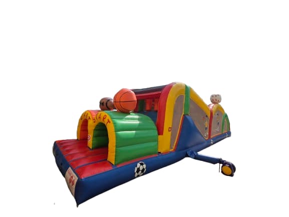 Make your next event a champion-level celebration with the Sports Obstacle Course! Designed for energetic kids and sports lovers, this dynamic inflatable obstacle course brings the excitement of multiple sports together in one action-packed attraction. Whether it's a birthday party, school fair, or community event, the All-Star Sports Obstacle Course delivers endless thrills and unforgettable memories.