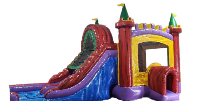 This Enchanted Castle Water Combo Water Combo XL with inflatable bottom splash pool has a generous size bounce area, inside basketball hoop, climb and double lane waterslide and inflated splash pool! Searching for inflatable blow ups, party rentals, bounce house rentals in or around Chattanooga, Dayton, Sale Creek, Dunlap, Soddy Daisy TN, Ooltewah TN, Sale Creek TN, Signal Mtn TN, Ringgold GA and surrounding areas the hottest inflatable rentals can be found at Running Wild Inflatables! Reserve now for your next party event with the book online tab below