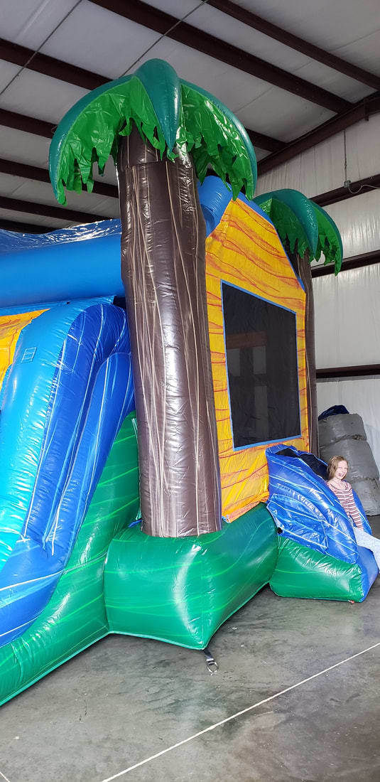 The Tropical Breeze water combo is a great choice for any party with a tropical theme. This combo features a bounce area, climb, inside basketball hoop and of course waterslide and splash pool! Bring the tropics to your party in Soddy Daisy TN with this fun combo! Chattanooga TN looking for tropical birthday party ideals? This combo fits in great with its bright colors and palm trees. Hours of fun and excitement at your little one's party!