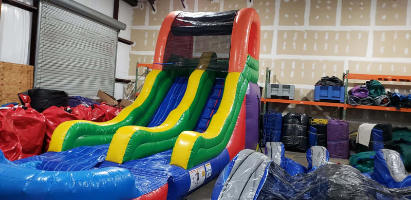 Check out this colorful waterslide with splash pool! Features slip resistant walk/stair area for safer play. Dayton this popular inflatable waterslide is a hit and has become quickly popular due to the multi bright colors and it is more neutral to fit in with pretty much any theme. Check availability now and book for your next event