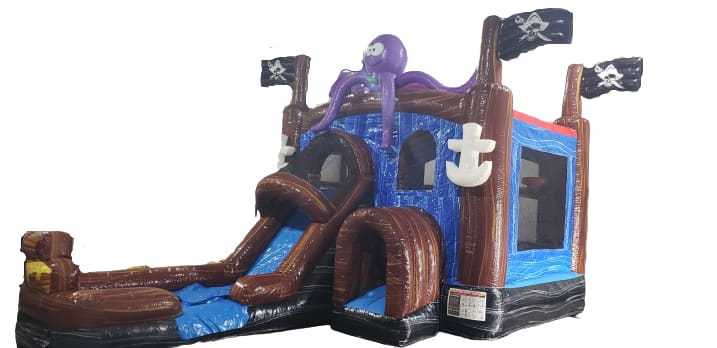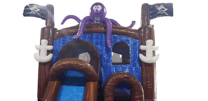 New for 2023! Our Pirates Cove combo is sure be a hit with your little adventurous pirates! The Pirates Cove combo offers bounce house area, climb, waterslide and inside basketball hoop! This inflatable combo with its 3D octopus, pirate flags, treasure chest and anchors will help the spark the imagination and enhances the fun filled day of being a pirate. Now Hixson TN, Soddy Daisy TN, Ooltewah TN and surrounding areas if you're looking for a Pirate themed inflatable rental for your birthday party then you found it! Book easily online with the tab below or have a question contact us Contact Running Wild Inflatables